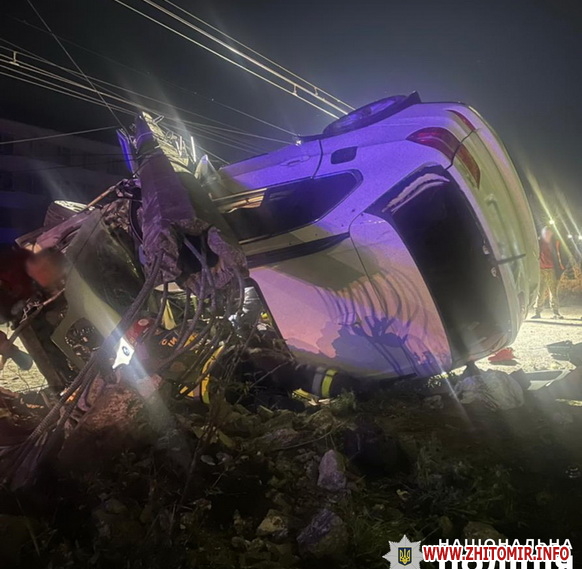 Як повідомляв Житомир.info, ввечері 22 квітня 2024 року у Житомирі на вул. Параджанова водій автомобіля BMW X5 не впорався з керуванням та зіткнувся з бетонною електроопорою. Від удару авто перекинулось.