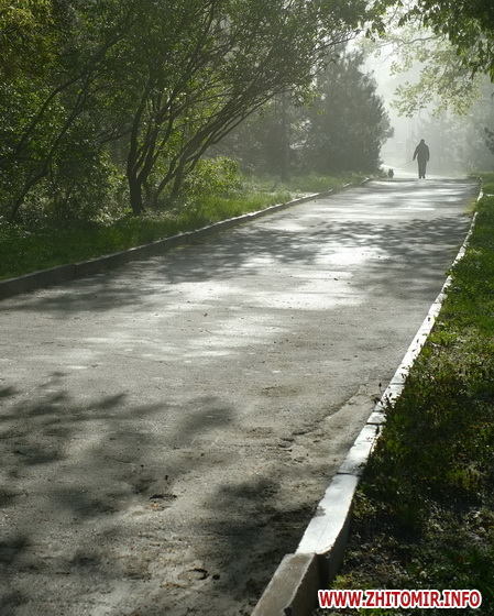 Після нічного дощу житомирський парк вранці 25 квітня був у весняному тумані.