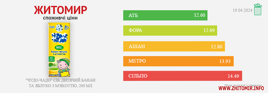 Моніторинг здійснено на основі інформації, отриманої за методом контрольної закупки 19.04.2024 р. у місцях продажу: АТБ, пр. Миру, 15 А, Фора, вул. Лятошинського, 2, Метро, вул. Ватутіна, 55-в, Сільпо, вул. Житній ринок, 1, Ашан, вул. Київська, 77