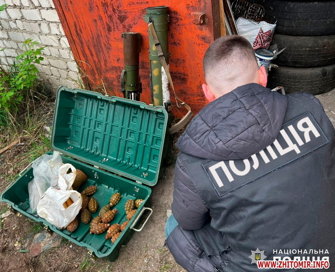 Нагадаємо, 18 квітня розслідуючи вбивство чоловіка на Польовій у Житомирі, правоохоронці провели обшуки в гаражі в смт Попільня. У фігуранта вилучили цілий склад зброї. Правоохоронці вилучили протитанкову ракету, протипіхотні міни, підривачі, гранатомети, постріли, понад 25 кг вибухівки, понад 22 тисячі набоїв різного калібру, понад сотню гранат, прицільні пристрої до РПГ, підривний пристрій, набої до гладкоствольної зброї та частини бойового автомата.