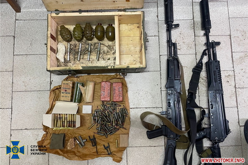 «У їх домоволодіннях, автомобілі та навіть у продовольчому магазині, де здійснював підприємницьку діяльність один з фігурантів, правоохоронці вилучили понад 4 000 набоїв, гранати, міни, вогнемет російського виробництва, реактивну протитанкову гранату, підривачі, автомат Калашникова та інші вибухонебезпечні предмети», - повідомляють житомирські правоохоронці.