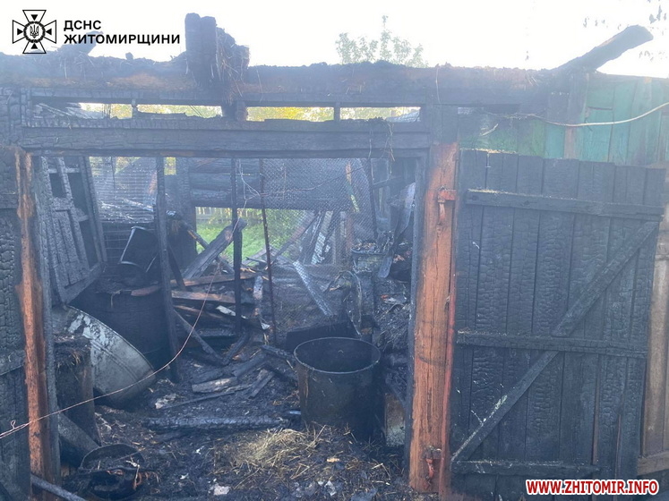 «29 квітня о 04:42 до Служби порятунку «101» надійшло повідомлення про пожежу в дерев’яній господарчій споруді в с. Рудня-Шляхова Хорошівської територіальної громади Житомирського району. На момент прибуття пожежного підрозділу вогнем був вже повністю охоплений сарай. Крім того, враховуючи щільність розташування забудов, полум’я поширилося на покрівлю гаража та існувала імовірність займання покрівлі житлового будинку, розташованого поруч», - йдеться в повідомленні.