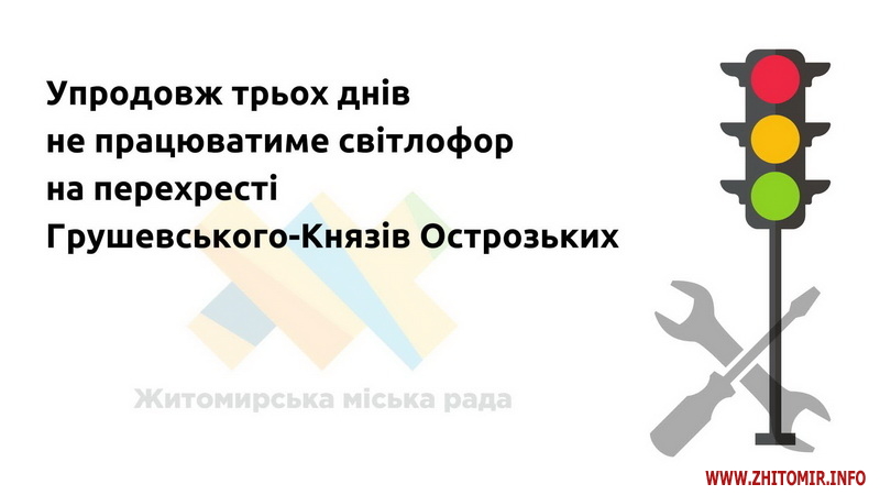 Відсьогодні й до суботи на перехресті вулиць М. Грушевського та Князів Острозьких не працюватиме світлофор.