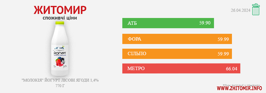 Моніторинг здійснено на основі інформації, отриманої за методом контрольної закупки 26.04.2024 р. у місцях продажу: АТБ, пр. Миру, 15 А, Фора, вул. Лятошинського, 2, Метро, вул. Ватутіна, 55-в, Сільпо, вул. Житній ринок, 1