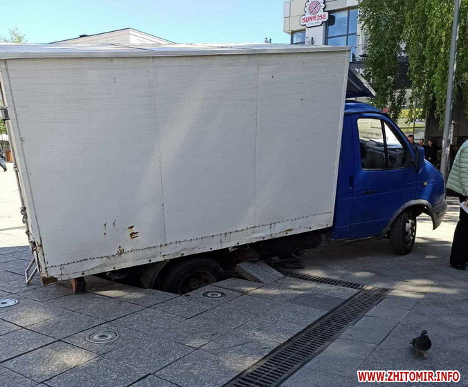 У Житомирі 8 травня на пішохідній Михайлівській провалилася вантажівка.