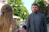 «Насправді Саші не можна відмовити, тому що він ветеран, людина дуже хороша, плюс він був у мене на «20:23». Коли написав: їдемо в Житомир, то я подумав, що це привід з'їздити до батьків у Житомир, а по-друге, подивимося, що тут хорошого є. По-перше, вважаю, що Михайлівська, прекрасна. Коли я був школярем, вона не так себе гарно почувала. Зараз тут прапори весь час розвішують, якісь парасольки, тобто вона мені сама як вулиця імпонує, але знову ж таки, ми пройшлися, глянули й пандуси є тільки в «Sharikava». І то не можна сказати, бо якщо людина не качається в залі 10 років, то не факт, що вона туди заїде, в принципі», – каже ведучий та актор Женя Янович.