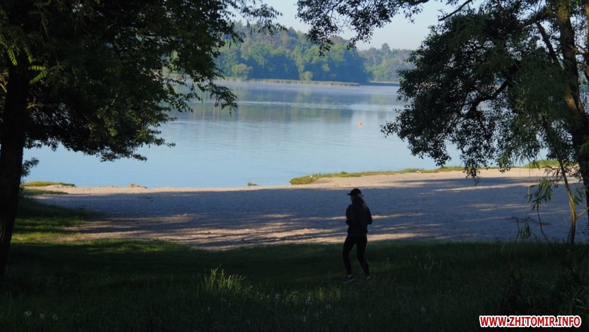 Вранці 17 травня в житомирському гідропарку майже немає людей, лише поодинокі бігуни та рибалки.