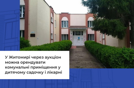 Місто передає у погодинну оренду кімнати в дитячому садочку площею понад 50 кв. м. Вони розташовані на другому поверсі закладу на вулиці Мазепи, 1а. За умовами договору тут дозволено проводити виключно заняття з дітьми. Суборенда не допускається.