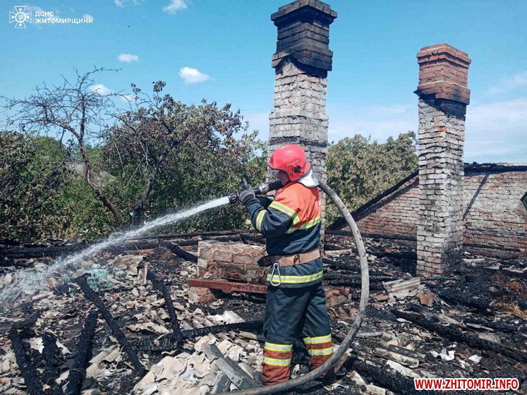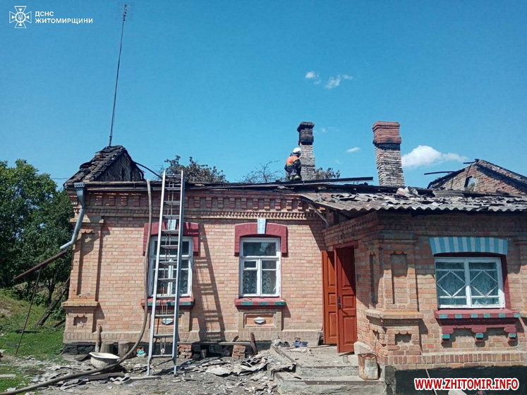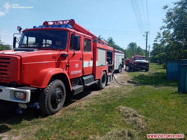 «23 травня о 10:43 до Служби порятунку «101» надійшло повідомлення про пожежу в приватному цегляному житловому будинку в с. Великі Низгірці Семенівської територіальної громади Бердичівського району. На місці події бійці ДСНС встановили, що загоряння виникло у місці входження до оселі лінії електропередач. Вогонь швидко розповсюдився горищем, де знаходилося сіно, та вже встиг охопити шиферну покрівлю. Існувала загроза поширення полум’я житлом», - йдеться в повідомленні.