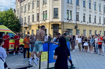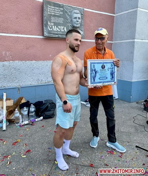 На вул. Михайлівська 25 травня спортсмен Дмитро Косатий встановив рекорд України.