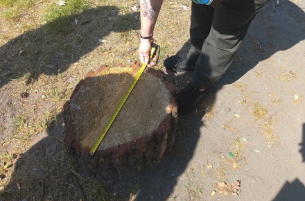«На адресу Державної екологічної інспекції Поліського округу надійшло звернення від Новогуйвинської селищної ради (Житомирський район) щодо самовільного видалення зелених насаджень на землях комунальної власності смт Новогуйвинське. Під час виїзду на місце події державними інспекторами з охорони навколишнього природного середовища Поліського округу за участі представників селищної ради було обстежено зазначену у зверненні територію та з'ясовано, що видалено дерево породи сосна та пошкоджено до ступеня припинення росту дерево породи клен», - йдеться у повідомленні.