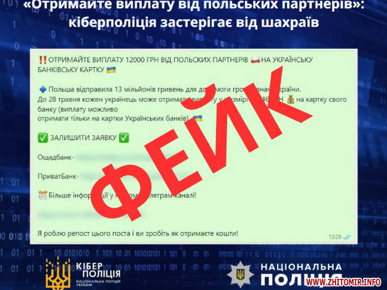 В інтернеті поширюються повідомлення про нібито грошові виплати українцям від Польщі. Для отримання коштів аферисти пропонують перейти на фішингові сайти, візуально схожі на справжні, де жертва має ввести необхідні дані.