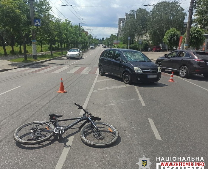 «Подія сталася 2 червня по вулиці Чуднівській. На місці працювала слідчо-оперативна група Житомирського райуправління. Попередньо, близько 13:00 відбулося зіткнення автомобіля «Opel», під керуванням 27-річного житомирянина, та велосипедиста, який у той час перетинав автошлях. У результаті ДТП керманич двоколісника, 40-річний містянин, отримав травми та був доставлений до медичного закладу», - йдеться у повідомленні.