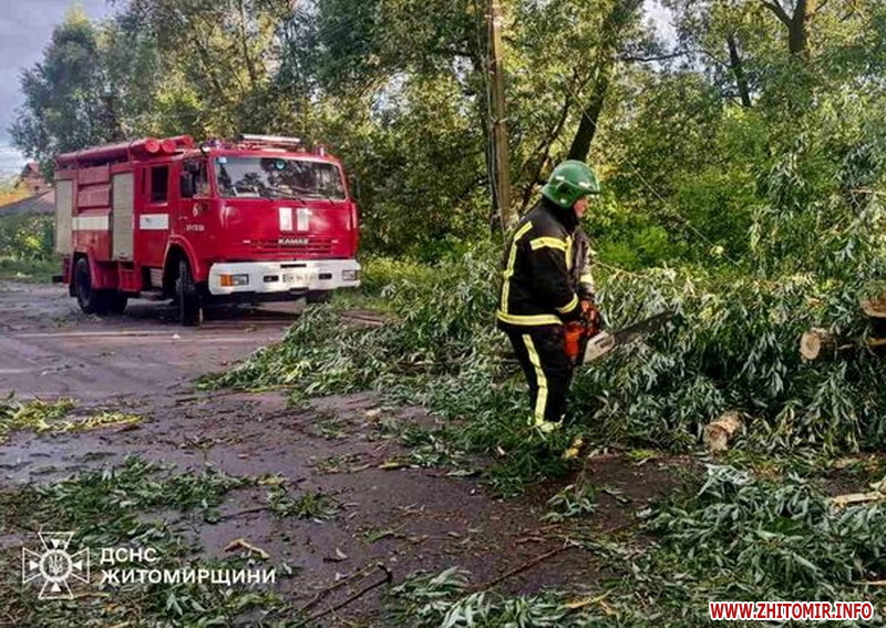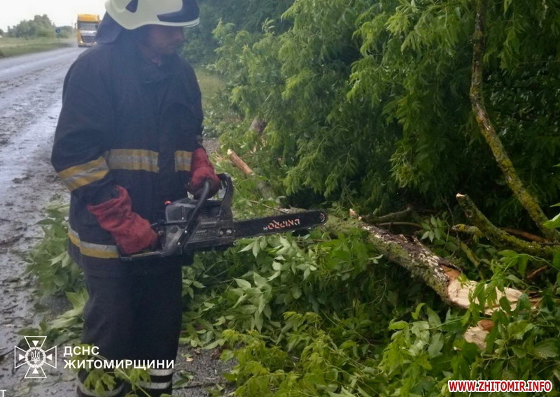 «За добу рятувальники п’ять разів залучалися до прибирання повалених негодою дерев. Загалом прибрано 17 дерев. Зокрема, поблизу с. Волиця Волицької громади Житомирського району впало на дорогу 12 дерев, які перекрили рух для транспорту. Наші хлопці розрізали та розтягнули повалені негодою дерев та звільнили проїжджу частину», - йдеться у повідомленні.