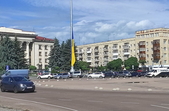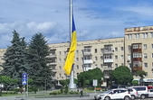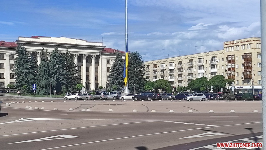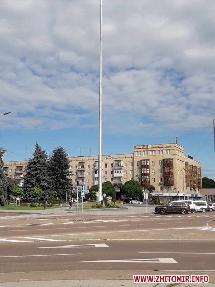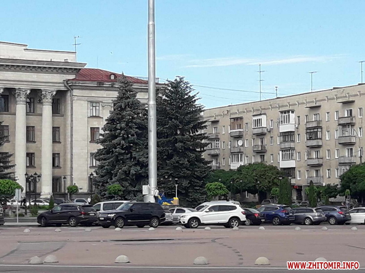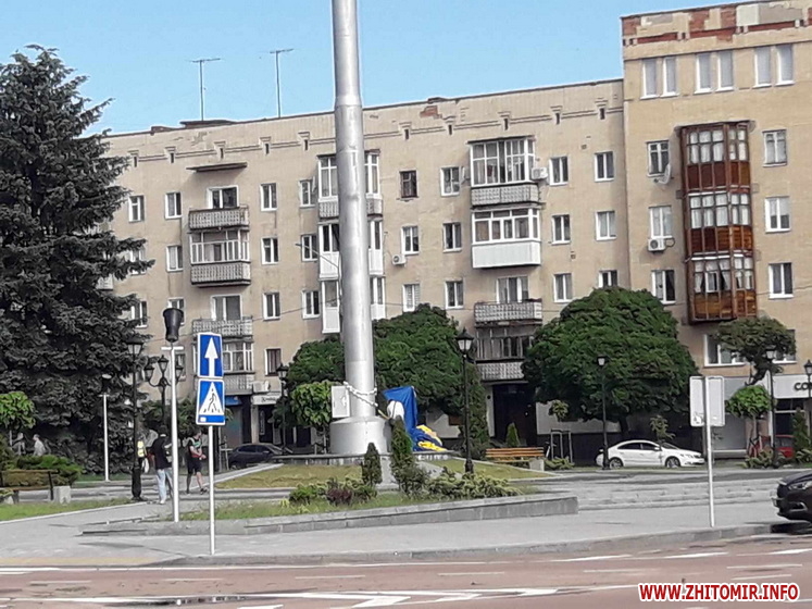 У Житомирі вранці 5 червня на майдані Соборному комунальники замінили пошкоджений прапор.