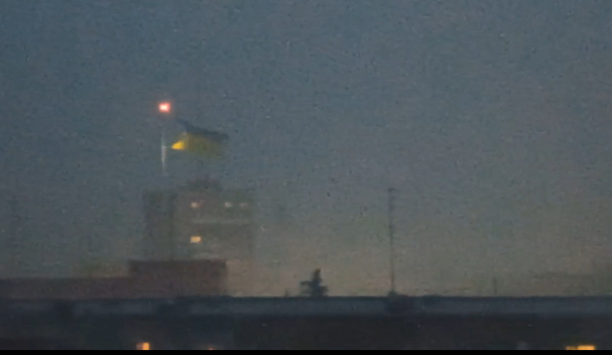 Прапор на майдані Соборному увечері 4 червня під час негоди. Фото читача Житомир.info