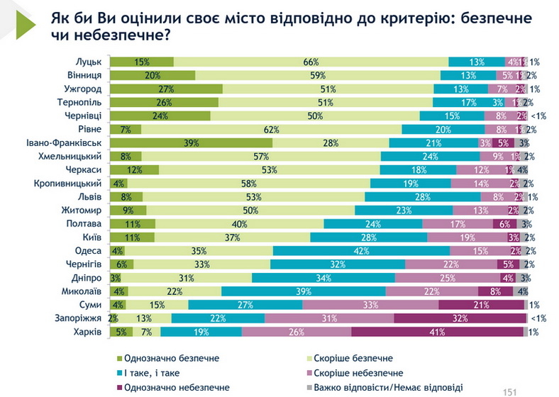 59% відсоткам житомирян у місті безпечно, а 15% - небезпечно.
