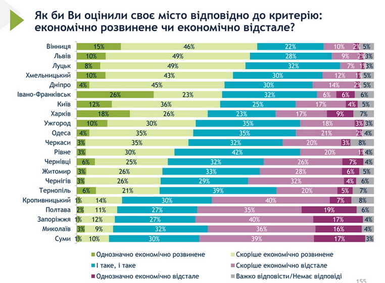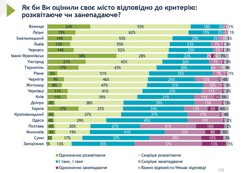 55% вважає, що місто попри все є розквітаючим, хоча лише 8% в цьому однозначно впевнені.