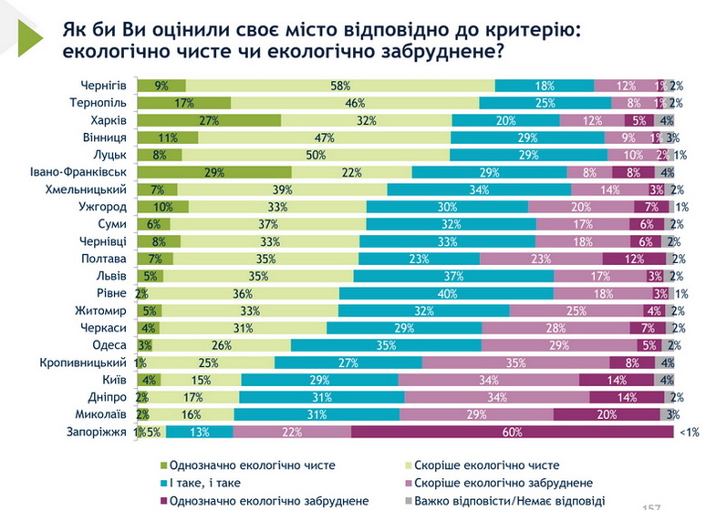 38% містян вважають Житомир екологічно чистим, а 29% - забрудненим.