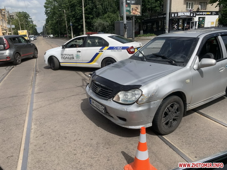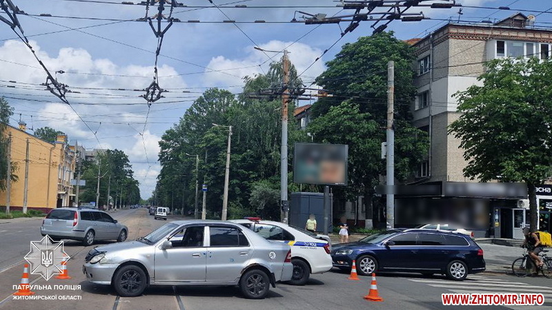 Нагадаємо, в обід 10 червня у Житомирі на вулиці Вітрука, поблизу гіпермаркету «ЗаТак», сталася ДТП за участю двох легкових автомобілів. Одна з автівок «вилетіла» на тротуар. Патрульні склали протокол на водійку Renault за порушення ПДР.
