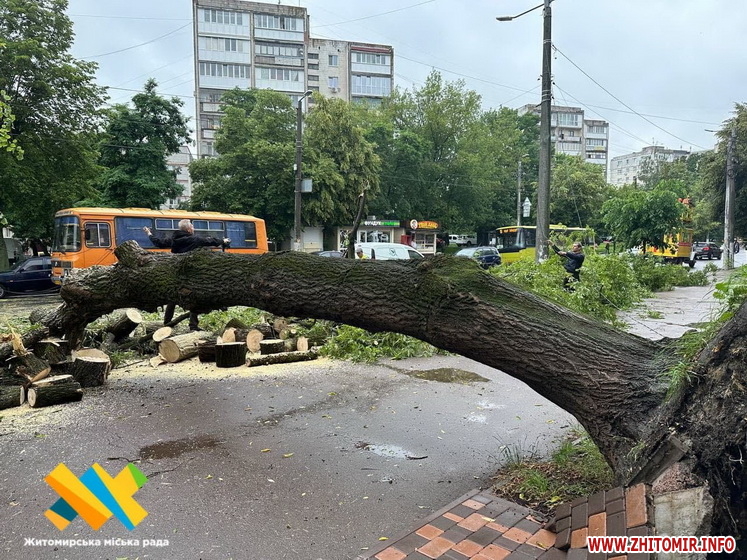 «Дерево фактично вирвало з корінням, воно зачепило під час падіння лінію електропередач та тролейбусну контактну мережу. За словами начальника КП «Житомирське трамвайно-тролейбусне управління» Сергія Лазарєва, контактну мережу вже полагодили. Тролейбуси № 2 та № 3 вже курсують своїм маршрутом», - йдеться у повідомленні.
