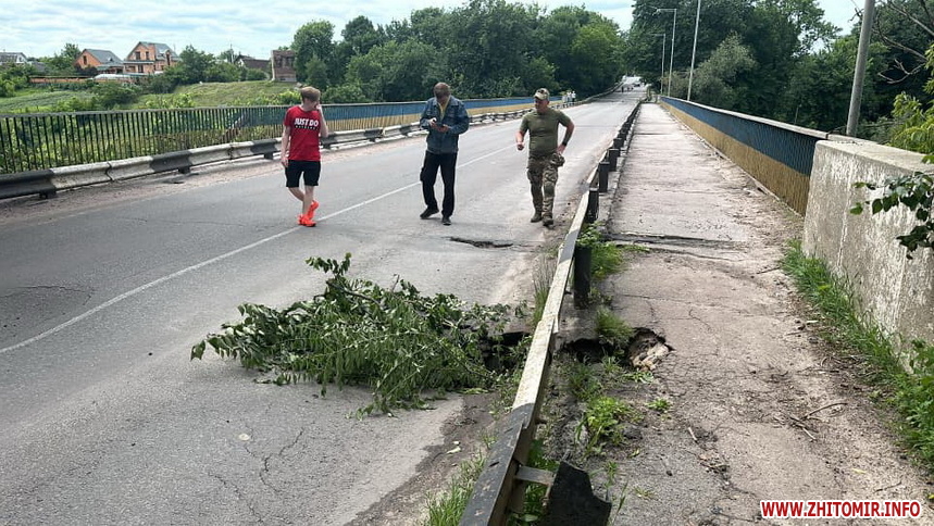 «До уваги водіїв та мешканців нашого міста.Міст який вже 5 років знаходиться в аварійному стані, почав руйнуватися. Через руйнування мосту рух через р.Тетерів перекрито. Інформація до балансоутримувача даного відрізку дороги доведена», - йдеться у повідомленні.