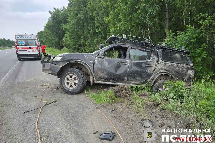 «Подія сталася 16 червня о 14:45 на 194 км автодороги Київ — Чоп, поблизу села Андріївки. На місці події працювали слідчо-оперативні групи відділення поліції №4 (смт Хорошів) Житомирського райуправління та слідчого управління ГУНП в області. Попередньо, 65-річний киянин, керуючи автомобілем «Mitsubishi» не впорався з кермуванням транспортним засобом, внаслідок чого легковик перекинувся. У результаті ДТП керманич автівки та його пасажир, 65-річний житомирянин, отримали травми та були доставлені до лікарень», - йдеться в повідомленні.