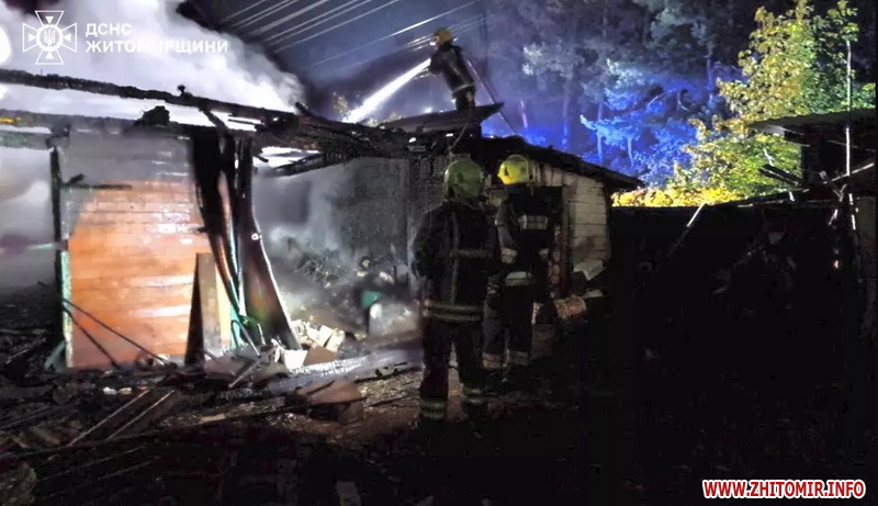 «18 червня о 23:36 до Служби порятунку надійшло повідомлення про пожежу в деревʼяній господарчій будівлі в м. Коростишів Житомирського району. На місці зʼясувалося, що вогонь вже повністю охопив споруду, а також міг перекинутися на дах житлового будинку, що розташований впритул. Ще до прибуття вогнеборців, 67-річна власниця травмувалася під час самостійного гасіння полум'я. Працівники швидкої допомоги з попереднім діагнозом опіки рук та ніг її госпіталізували», - йдеться у повідомленні.