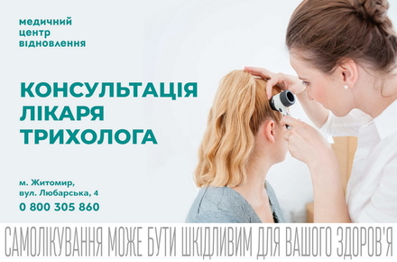 Якщо вас турбує стан вашого волосся – не зволікайте з його лікуванням, адже чим раніше вдається виявити причину, тим швидше проходить процес відновлення. Записатися на консультацію до лікаря-трихолога або дізнатися більше інформації можна на сайті МЦ «Відновлення» або за телефоном 0800 305 860. Чекаємо на вас за адресою м. Житомир, вул. Любарська, 4.
