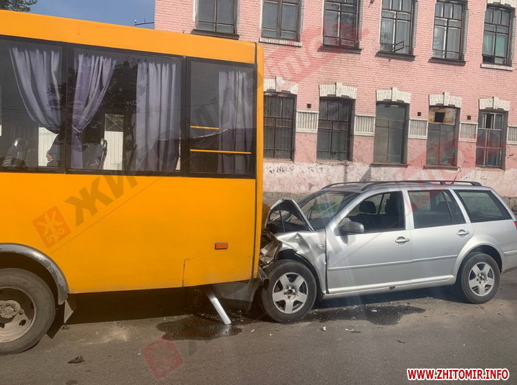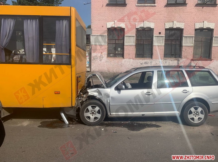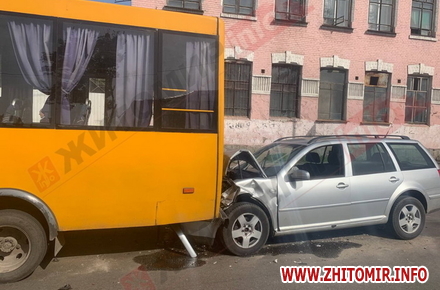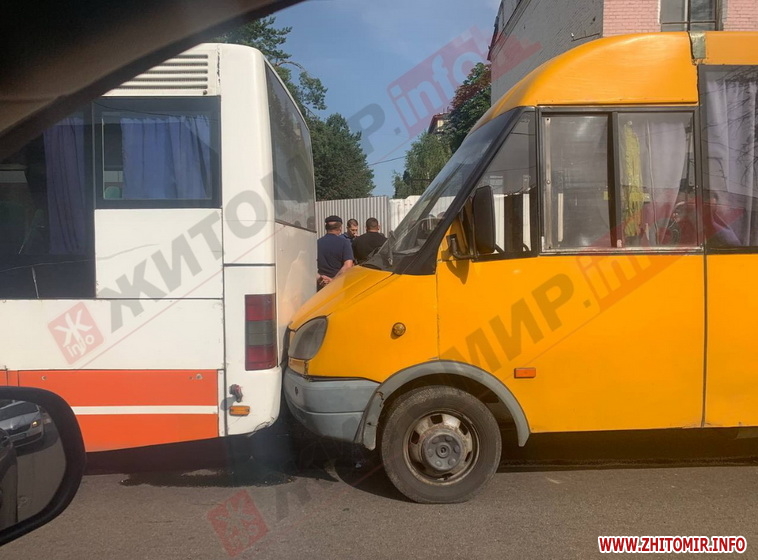 У Житомирі вранці 22 червня на вулиці Жуйка сталася ДТП за участі автобуса, маршрутки та легкового автомобіля.