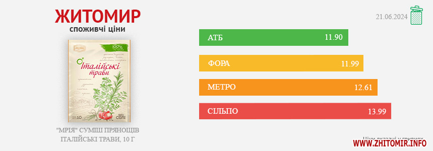 Моніторинг здійснено на основі інформації, отриманої за методом контрольної закупки 21.06.2024 р. у місцях продажу: АТБ, пр. Миру, 15 А, Фора, вул. Лятошинського, 2, Метро, вул. Ватутіна, 55-в, Сільпо, вул. Житній ринок, 1