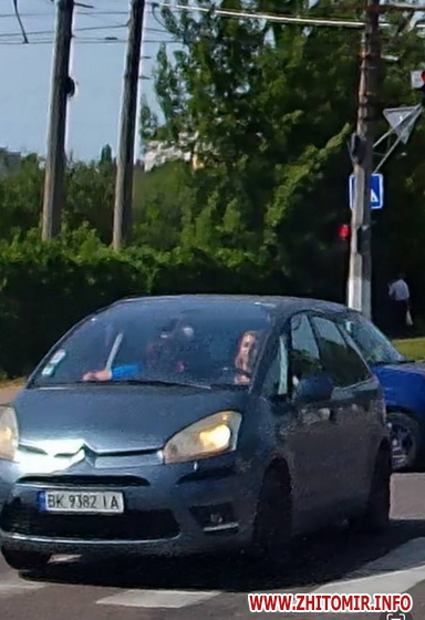 У Житомирі на перехресті вулиць Вітрука та Корольова Citroen проїхав на червоний сигнал світлофора і ледь не збив людей на пішохідному переході.