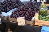 Ціни на фрукти та ягоди різні: найнижча ціна на черешню, яку вдалось знайти 45 грн/кг, найвища - 120 грн. Абрикоси - від 65 до 120 грн. Продавчині кажуть, що чорниці коштують 50 грн за пів літра, а малини — від 25 грн.