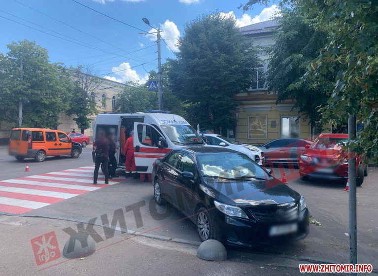 На майдані Корольова у Житомирі 28 червня сталася ДТП за участі двох автомобілів. На місці працюють патрульні та перебуває «швидка».