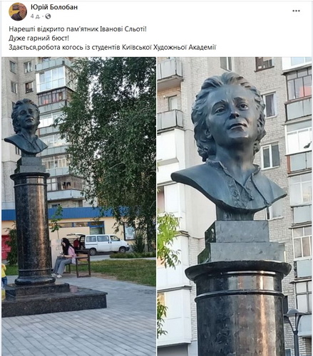 «Нарешті відкрито пам'ятник Іванові Сльоті! Дуже гарний бюст! Здається, робота когось із студентів Київської Художньої Академії», - написав 26 червня житомирянин Юрій Болобан та виклав фото пам’ятника, на встановлення якого лише збираються надати дозвіл.