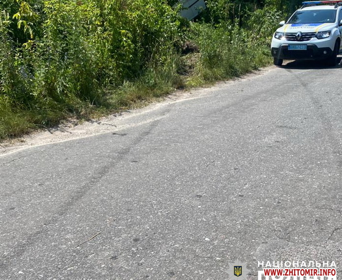 «Подія сталася 1 липня близько 11:10 на автодорозі Радомишль-Ірша неподалік с. Великої Рачі. На місці події працювала слідчо-оперативна група відділення поліції №3 (м. Радомишль) Житомирського райуправління. Попередньо, 40-річний водій автомобіля «Renault», житель міста Радомишля, на заокругленій ділянці дороги не впорався з керуванням транспортним засобом, внаслідок чого той з’їхав у кювет та перекинувся», - йдеться у повідомленні.