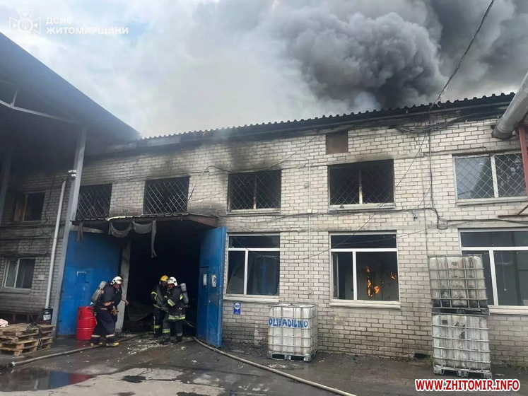 «2 липня о 14:55 по лінії «101» надійшло повідомлення про пожежу в м.Бердичеві у цеху з виробництва підошви для взуття.Зайнялося у цегляній будівлі, площа пожежі склала близько 200 кв.м. О 15:06 підрозділами ДСНС пожежу локалізовано. На місці події працює 3 відділення рятувальників, залучено 3 одиниці пожежної техніки та автомобіль газодимозихисної служби. Усі обставини події встановлюються. Ліквідація пожежі наразі триває», - йдеться в повідомленні.