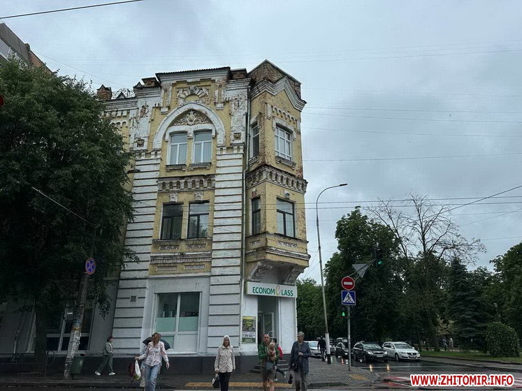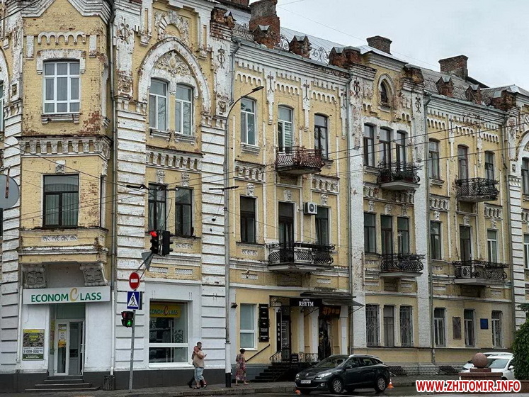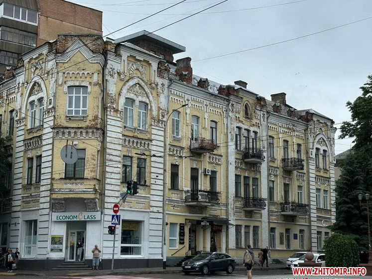 Нагадаємо, триповерховий будинок на розі Великої Бердичівської та Старого бульвару збудований у 1870 році та був Доходним будинком, тобто, готелем, його історію та стан на січень 2020 року дивіться тут.