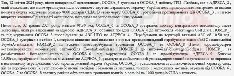 У вироці зазначається, що житомирянин навесні отримав кошти за організацію незаконного перетину кордону. Чоловіки мали потрапити до Молдови через м. Кодима Одеської області, але там їх затримали прикордонники.