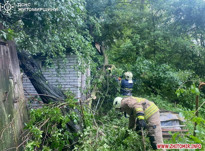 «Через погіршення погодних умов, що супроводжувалося поривами вітру, рятувальники тричі виїжджали 3 липня на виклики, пов'язані з падінням дерев та гілля на дороги. Події сталися у с.Будичани, Троянів та Глезне Житомирського району. А в обласному центрі дерево впало на допоміжну споруду у приватному секторі», - йдеться у повідомленні.