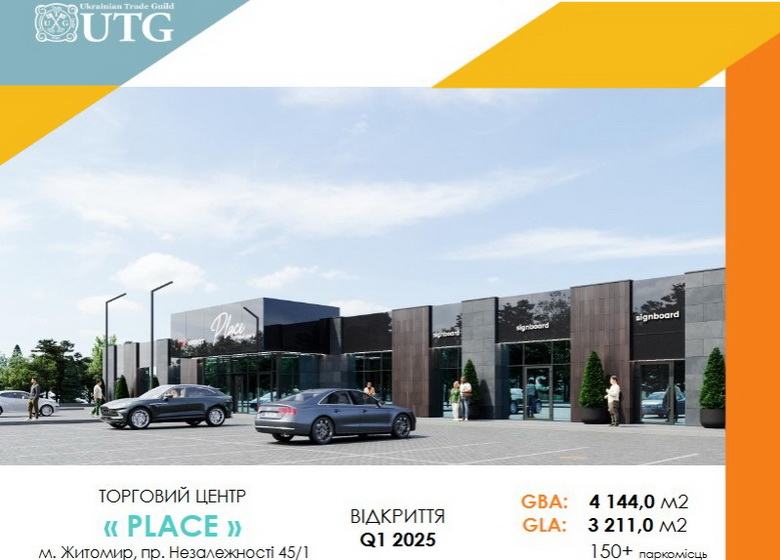 «Новий об’єкт розташований на проспекті Незалежності. Його загальна площа складе 4144 кв.м, з яких орендна – 3211 кв.м. UTG виступає ексклюзивним брокером проекту. Відкриття ТЦ PLACE заплановано на кінець поточного року. Новий торговий центр PLACE розташується на головній магістралі з центру міста до північних мікрорайонів. Завдяки чому біля ТЦ спостерігатиметься насичений автомобільний та пішохідний потік. Також локація характеризується насиченою соціальною та транспортною інфраструктурою та знаходиться в оточенні житлової забудови. Серед головних орендарів ТЦ: продовольчий супермаркет АТБ, універмаг одягу, магазин електроніки, аптека і кафе. Новий ТЦ стане місцем, де мешканці сусідніх мікрорайонів зможуть з комфортом зробити щоденні покупки», - йдеться у повідомленні.