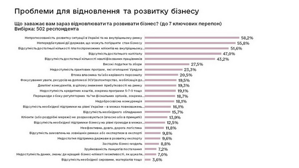 Власники та CEO підприємств виокремлюють 5 ключових проблем, які заважають відновлювати та розвивати економічну діяльність: