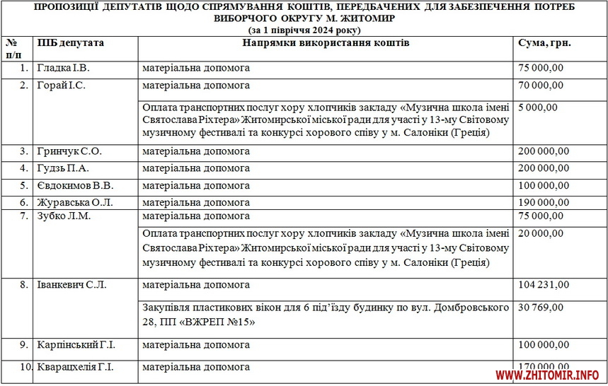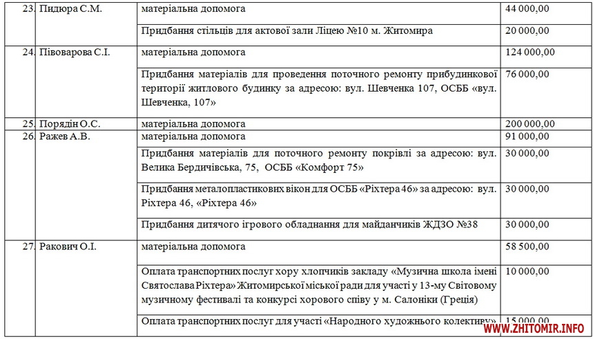 Як повідомляв Житомир.info, депутатам Житомирської міськради у 2021 та 2022 році виділяли по 200 тис. грн на потреби виборчого округу.