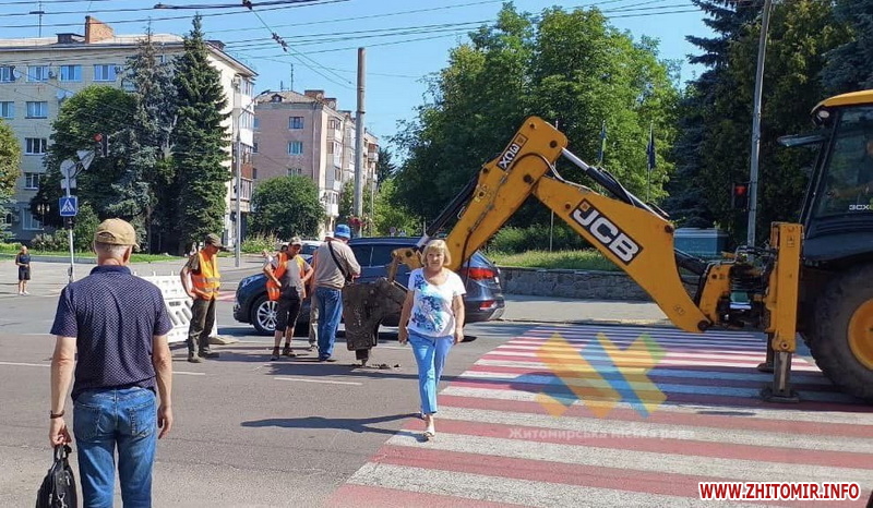 «Житомирводоканал» проводить аварійні роботи на перехресті вулиць Велика Бердичівська та Шевченка. Дві середні смуги цього напрямку руху перекриті.