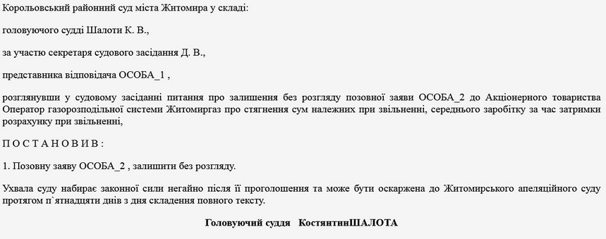 Колишні керівники АТ «Житомиргаз» Валентин Ющенко та ПрАТ «Коростишівгаз» Володимир Кузьменко хотіли отримали мільйони виплат за звільнення: заяву Ющенка залишили без розгляду, справа Кузьменка й досі у суді, але зі зменшеними вимогами.