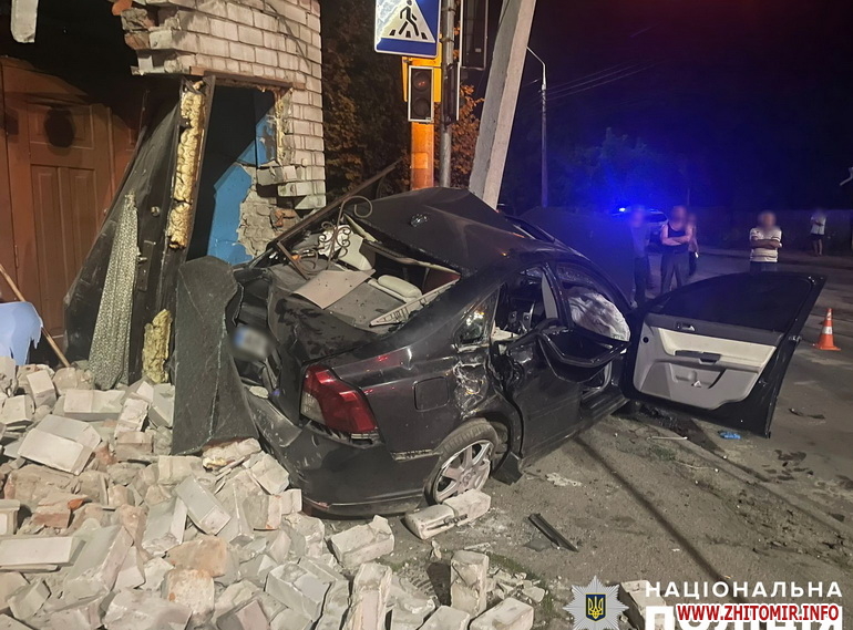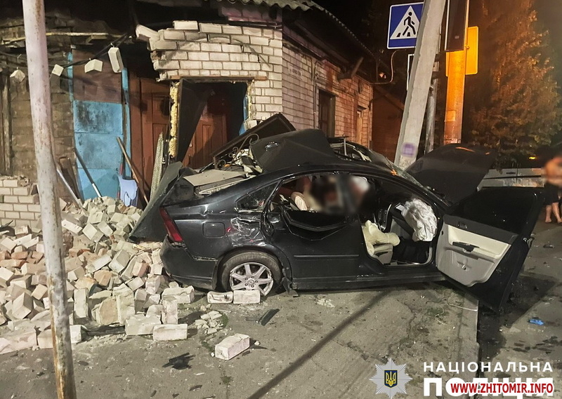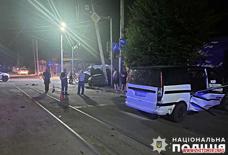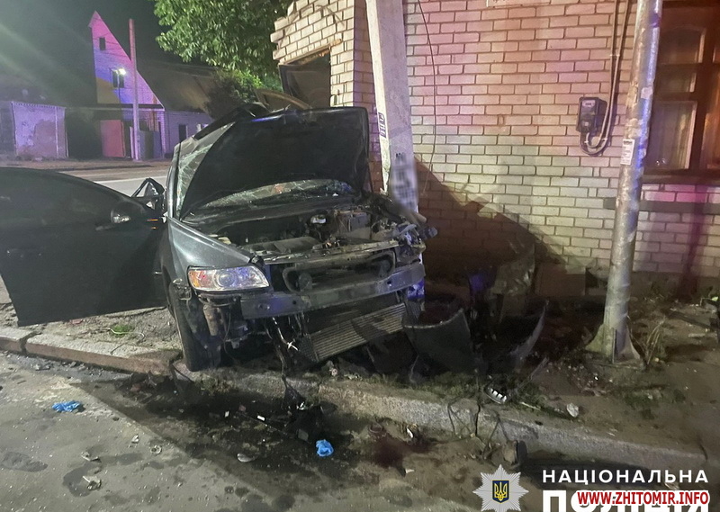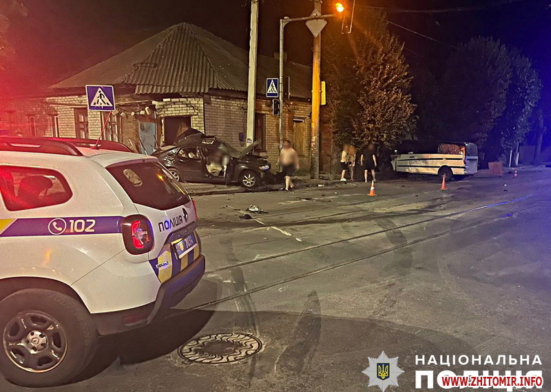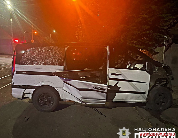 «Автотроща сталася 9 липня на перехресті вулиць Бориса Тена та Івана Мазепи в обласному центрі. На місці події працювала слідчо-оперативна група Житомирського райуправління поліції. Попередньо, близько 23:50 відбулося зіткнення автомобілів «Mercedes Vito», під керуванням 34-річного містянина, та «Volvo», за кермом якого перебував 43-річний житель міста Вінниці. У результаті ДТП легковик виїхав на тротуар і зіткнувся зі стіною приватного будинку та стовпом», - йдеться у повідомленні.