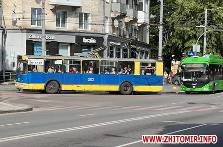 Житомирські тролейбуси, рух яких удень 10 липня призупиняли через відключення електроенергії, тимчасово курсують за зміненими маршрутами руху.