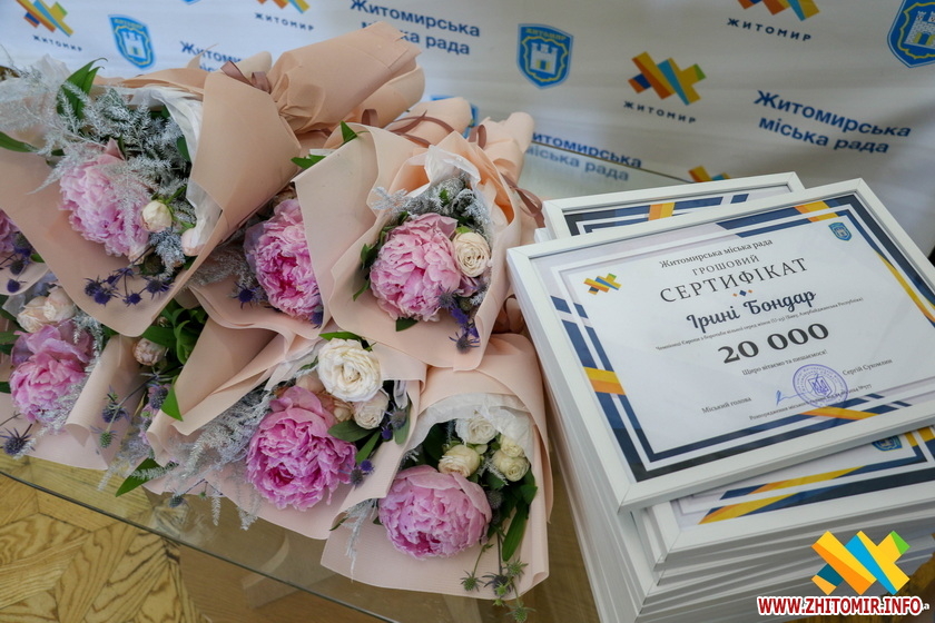 У Житомирі переможцям й призерам міжнародних змагань та їхнім тренерам вручили грошові сертифікати.