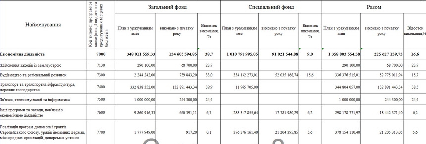 Загальні видатки бюджету Житомирської громади за перше півріччя склали 2 млрд 057 млн 853 тис. 333,16 грн (39,2% до річного плану). Найбільше недофінансування по економічній діяльності – 225,6 млн грн, або 16,6% до річного плану: