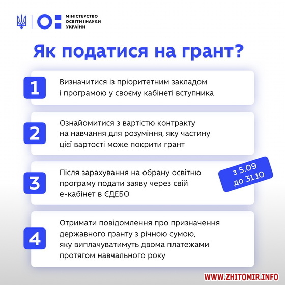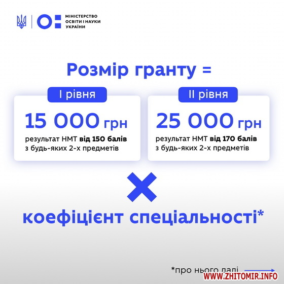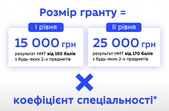 Важливо – розмір гранту може бути більшим (тобто, помножений на відповідний коефіцієнт), що залежатиме від обраної спеціальності.